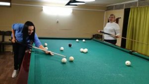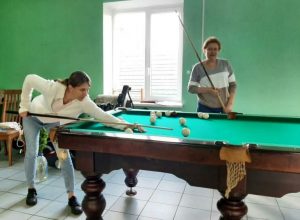 В этом году у нас сложился полноценный женский турнир по бильярду. К этапу жеребьевки было набрано восемь участниц с разным игровым опытом. И тот факт, что многие участвовали в соревнованиях впервые, преподнес сюрприз. Стандартный подход до двух проигрышей, никого не расстроил. Более удачливые игроки двигались вперед, а освобождавшиеся от бильярдного стола стремительно перемещались к теннисному. Так, в рамках одного турнира проходило фактически два. Наши дамы умеют рационально использовать предоставленные возможности.