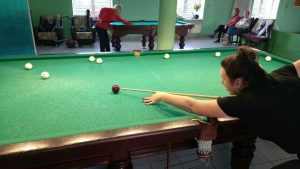 В этом году у нас сложился полноценный женский турнир по бильярду. К этапу жеребьевки было набрано восемь участниц с разным игровым опытом. И тот факт, что многие участвовали в соревнованиях впервые, преподнес сюрприз. Стандартный подход до двух проигрышей, никого не расстроил. Более удачливые игроки двигались вперед, а освобождавшиеся от бильярдного стола стремительно перемещались к теннисному. Так, в рамках одного турнира проходило фактически два. Наши дамы умеют рационально использовать предоставленные возможности.