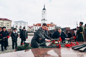 В Могилёве прошла торжественная церемония возложения цветов и венков к Вечному огню мемориального комплекса на площади Славы.
