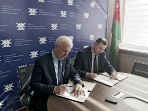 Председатель Белорусского профсоюза работников местной промышленности и коммунально-бытовых предприятий  Юрий Дорогокупец совместно с Министром жилищно-коммунального хозяйства Республики Беларусь Андреем Хмелем подписали дополнительное соглашение к Тарифному соглашению.