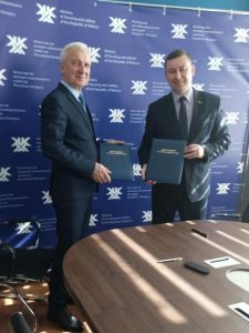 Председатель Белорусского профсоюза работников местной промышленности и коммунально-бытовых предприятий  Юрий Дорогокупец совместно с Министром жилищно-коммунального хозяйства Республики Беларусь Андреем Хмелем подписали дополнительное соглашение к Тарифному соглашению.