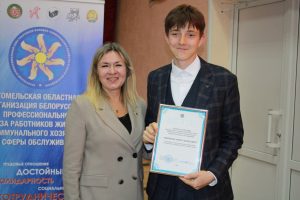 Сегодня в Гомельских колледжах прошла торжественная церемония награждения. Заместитель председателя Белорусского профсоюза работников ЖКХ и сферы обслуживания Лариса Гордон лично вручила сертификаты стипендиатам и поздравила их с заслуженной наградой.
