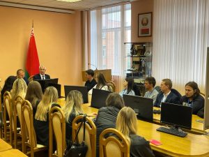 Слушатели Белорусского профессионального союза работников культуры, информации, спорта и туризма в рамках обучающих курсов встретились с депутатом, директором Национальной библиотеки Вадимом Гигиным. К встрече присоединилась и председателем первички Нацбиблиотеки Секач Елена. Встреча вышла теплой – ребята задавали интересующие их вопросы во время экскурсии по библиотеке, беседа вышла интересной и оживленной.