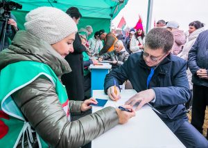 – Символично, что сбор подписей начинается в праздничный день, – пояснил он. – Сегодня здесь столько сторонников, единомышленников, что даже выстроилась большая очередь. Считаю, что участие в выборах – гражданский долг каждого. Те, кто ставят подпись, вносят свой вклад в будущее нашей страны.