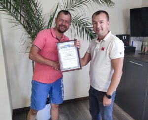 В уютной атмосфере Благодарственные письма от Гродненской областной организации профсоюза работников местной промышленности и коммунально-бытовых предприятий получили Мицкевич Дмитрий, слесарь по изготовлению узлов и деталей сантехсистем, и Стельмашек Антон, начальник участка. Эти награды были вручены лидером областной организации профсоюза Андреем Кардашом, подчеркивающей значимость их вклада в развитие предприятия и поддержку профсоюзного движения.