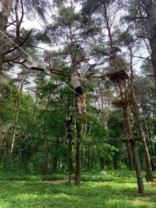 Веревочный парк представляет собой комплекс препятствий, этапов, размещенных между деревьев на определенной высоте. Практически для каждого это было первое посещение веревочного парка. Это уникальная возможность проверить свои силы, ловкость и умение держаться в команде. Это такой вызов самому себе! Это не весёлое «сладкое» развлечение – это страшно, это ссадины, горящие ладони, и одновременно это зашкаливающий драйв, пылающие щеки и горящие глаза!