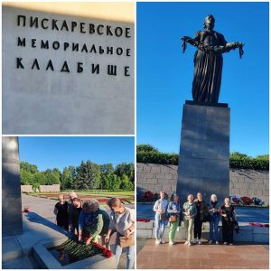 Кроме того, члены профсоюза посетили мемориальное кладбище Пескаревское — крупнейшее в мире, где покоятся жертвы блокады Ленинграда и воины Ленинградского фронта. Они почтили память павших великой минутой молчания и возложили цветы к монументу «Мать — Родина».