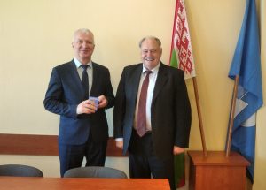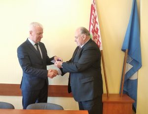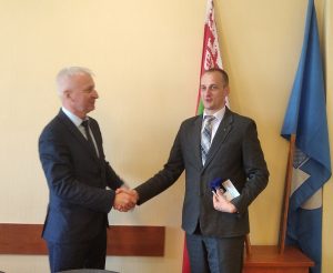 Также член Президиума Республиканского комитета Профсоюза, председатель Гомельской областной организации Юрий Корж вручил данную награду Юрию Дорогокупцу, председателю Белорусского профессионального союза работников местной промышленности и коммунально-бытовых предприятий.