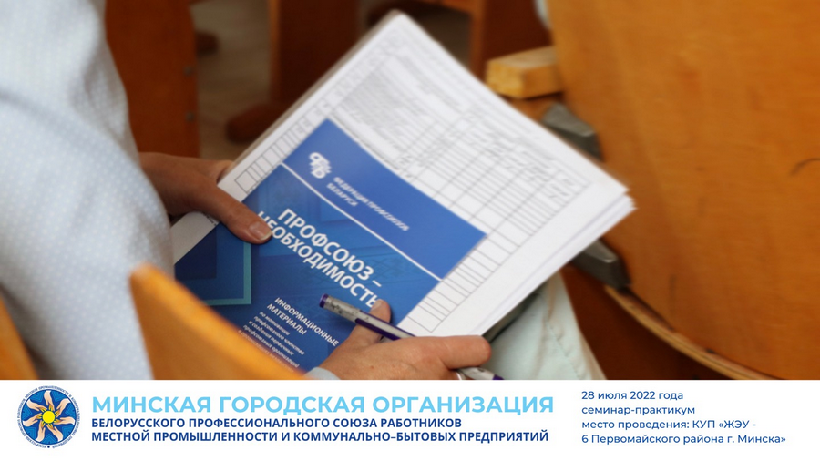 28 июля на базе КУП «ЖЭУ — 6 Первомайского района г. Минска» прошёл семинар-практикум с участием профактива Первомайского района. Программа семинара включала в себя тематику по направлениям деятельности первичных профсоюзных организаций. О порядке заключения коллективного договора на новый срок, внесении изменений и дополнений, проверки выполнения и информирования членов профсоюза, финансовую дисциплину, вопросы оргработы. Состоялось обсуждение […]