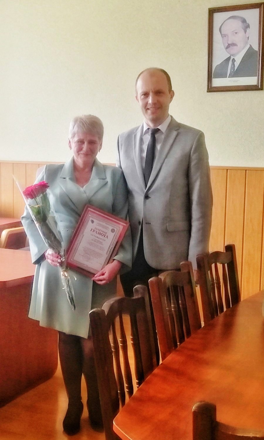 За многолетний добросовестный труд в системе бытового обслуживания населения, активное участие в работе первичной профсоюзной организации Почётной грамотой Могилёвского областного комитета Белорусского профсоюза работников местной промышленности и коммунально-бытовых предприятий награждена главный бухгалтер Открытого акционерного общества “Химчистка и стирка белья” Лилия САФРОНЕНКО. Вручение грамоты состоялось в торжественной обстановке в трудовом коллективе предприятия. Поздравляем!