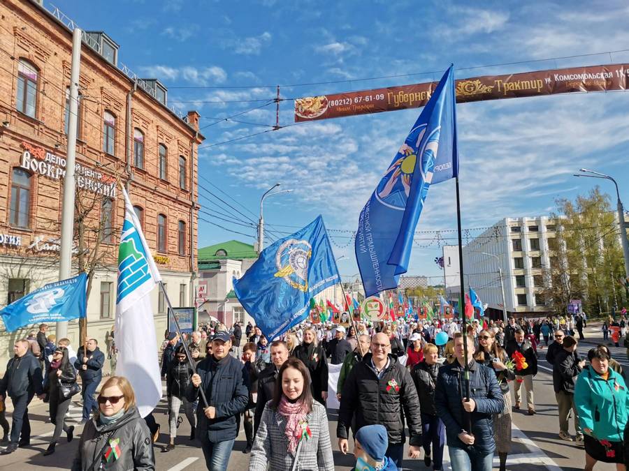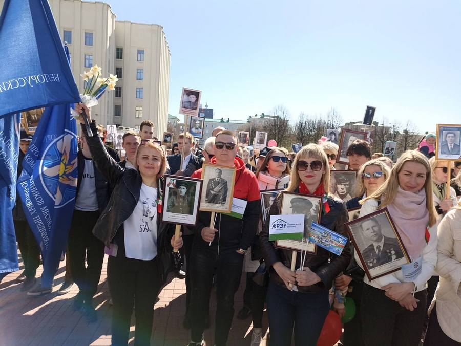 В Витебске прошло праздничное шествие, посвященное 9 Мая. На концерте звучали песни Победы. Жители города возложили цветы к Вечному огню. Профсоюзные работники и активисты также приняли участие в праздничных мероприятиях.