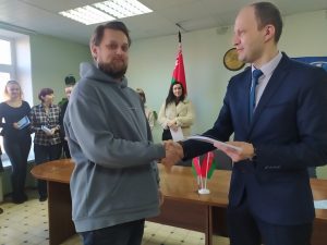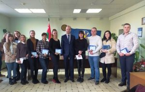 Председатель Могилёвской областной организации отраслевого профсоюза Павел ЖУЙКОВ 15 марта вручил профсоюзные билеты молодым работникам коммунального унитарного предприятия “ЖРЭУ Октябрьского  района г. Могилёва”: