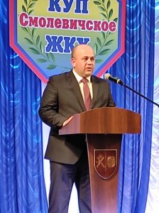 На торжественное мероприятие были приглашены все работники предприятия, их семьи и почетные гости. Звучали поздравления и слова благодарности от заместителя председателя Смолевичского районного исполнительного комитета Парамонова Н.Г., председателя Смолевичского районного Совета депутатов Клюевой М.М , директора предприятия Горбача А.С., председателя профсоюза Чичко Т.И. и почетных гостей.