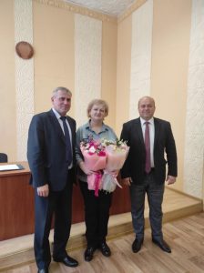 В торжественной обстановке Владимир Гуринович поздравил начальника отдела делопроизводства РКУП «Смолевичское ЖКХ» Наталию Будникову с днем рождения и достижением пенсионного возраста.
