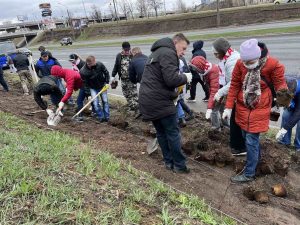 16 апреля 2022 работники государственного предприятия «Минскреклама» приняли участие в республиканском субботнике по наведению порядка на территории Московского района г.Минска. Высадили на проспекте Жукова около тысячи саженцев кустарников.