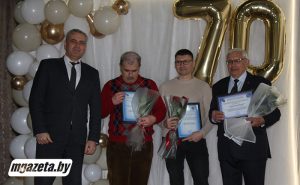 За многолетний добросовестный труд, активное участие в профсоюзной жизни предприятия Владимир Гуринович вручил Почётную грамоту — Михаилу Коледе, директору предприятия, Благодарность — Николаю Саевичу, ведущему экономисту предприятия и Благодарственное письмо — Михаилу Свиридо, слесарю МСР предприятия.