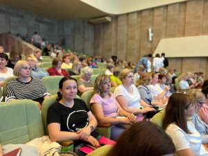 Открыла мероприятие заместитель председателя ФПБ Татьяна Филимонова. Она напомнила, что с 1 июля 2024 г. в Беларуси изменяются подходы по начислению и выплате больничных листков, а также поблагодарила гостей за то, что нашли время для встречи с профактивом, среди которого было 14 представителей профсоюза местной промышленности и коммунально-бытовых предприятий.