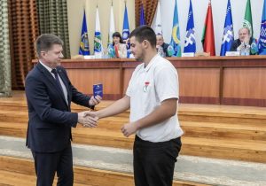 Юрий Сенько обратил внимание молодежи на то, что страна возлагает надежды на нее в будущем. В торжественной обстановке он также вручил профсоюзные билеты первокурсникам профильных учебных заведений, которые у себя на факультетах избраны профлидерами.